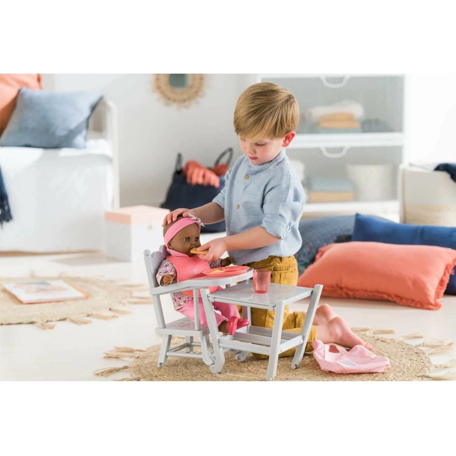 Le coffret repas contient les accessoires indispensables pour le repas des grands poupons :Â