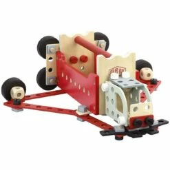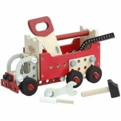 Les enfants pourront visser, tourner, scier, marteler, mesurer comme les grands avec les nombreux accessoires. En assemblant les écrous, boulons et planchettes grâce aux modèles fournis, la boîte à outils se transformera en camion, grue et robot et bien plus encore suivant l’imagination des enfants.