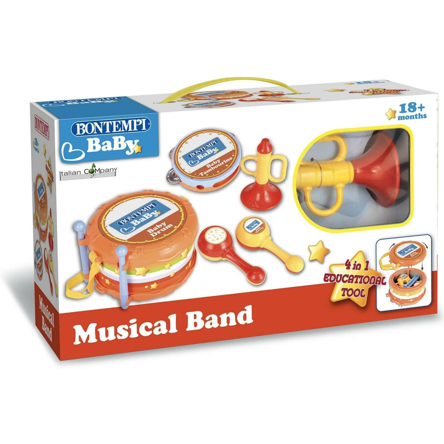 Et si votre enfant veut s’exercer aux instruments Ă vent, cela tombe bien. Ce kit musical colorĂ© Bontempi spĂ©cialisĂ© adaptĂ© pour les tout-petits, propose Ă©galement une petite trompette avec des poignĂ©es de chaque cĂŽtĂ©s pour faciliter sa prise en main. S’il dĂ©cide de jouer avec des copains, alors ensemble ils pourront transformer votre salon en vĂ©ritable concert de musique ! Et qui sait, peut-ĂȘtre deviendront-ils musiciens plus tard… Cet ensemble musical est facile Ă ranger : les maracas, la trompette et les tambourins peuvent se ranger Ă l’intĂ©rieur du tambour.
