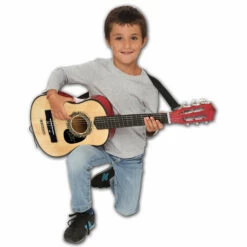 Cette guitare sera parfaite pour jouer vos premiĂšres mĂ©lodies Ă partir de 5 ans. Cette guitare Ă 6 cordes vous permet d’apprendre la mĂ©thode musicale avec un bel instrument au son rĂ©el qui peut ĂȘtre accordĂ©e comme celles des grands. Un mĂ©diator est fourni pour gratter les cordes. De plus elle dispose d’une bandouliĂšre pour pouvoir la porter facilement comme si vous Ă©tiez sur scĂšne.