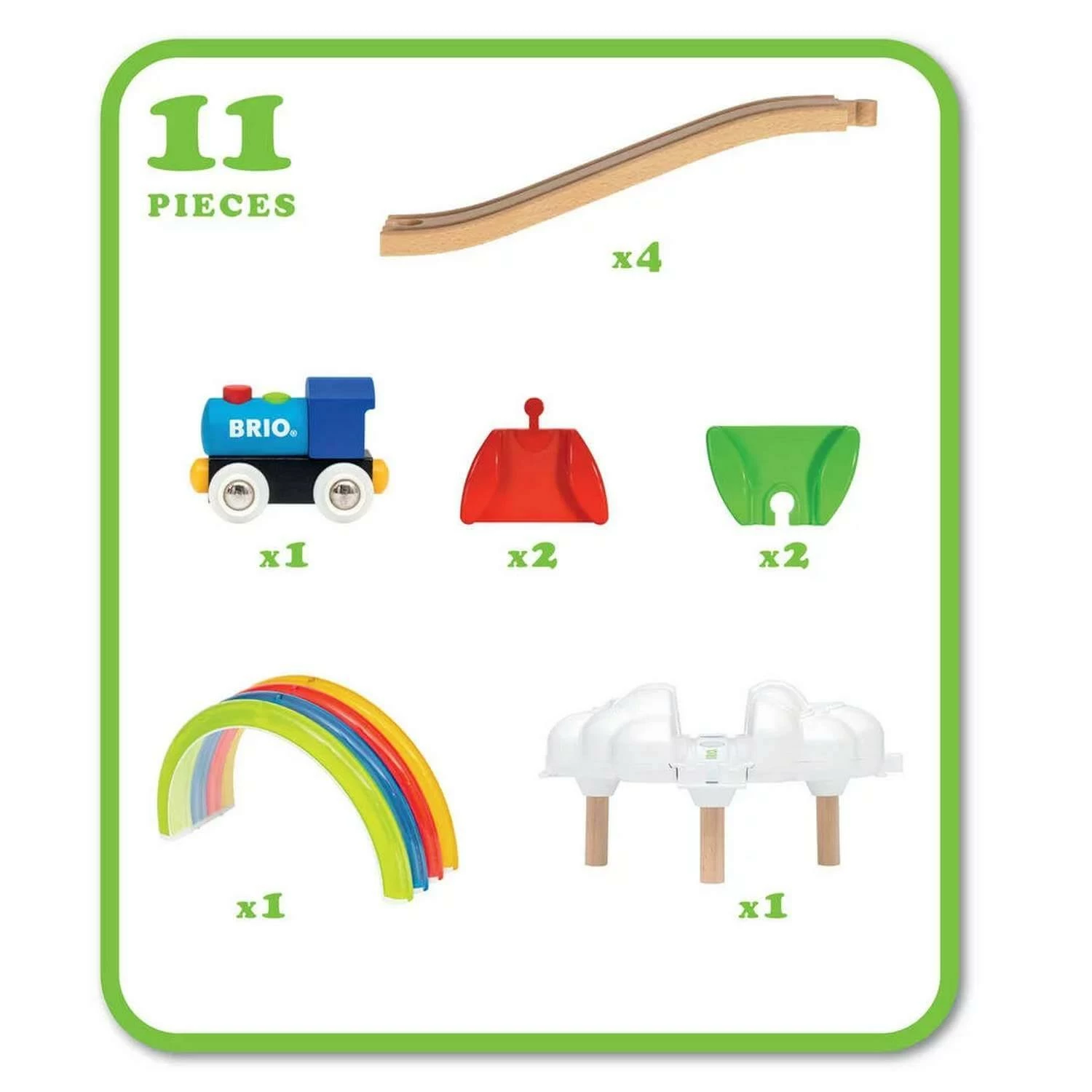 Avec les diffĂ©rentes couleurs et sons, votre enfant plongera dans l’univers de Brio et de son premier circuit Arc-en-ciel !