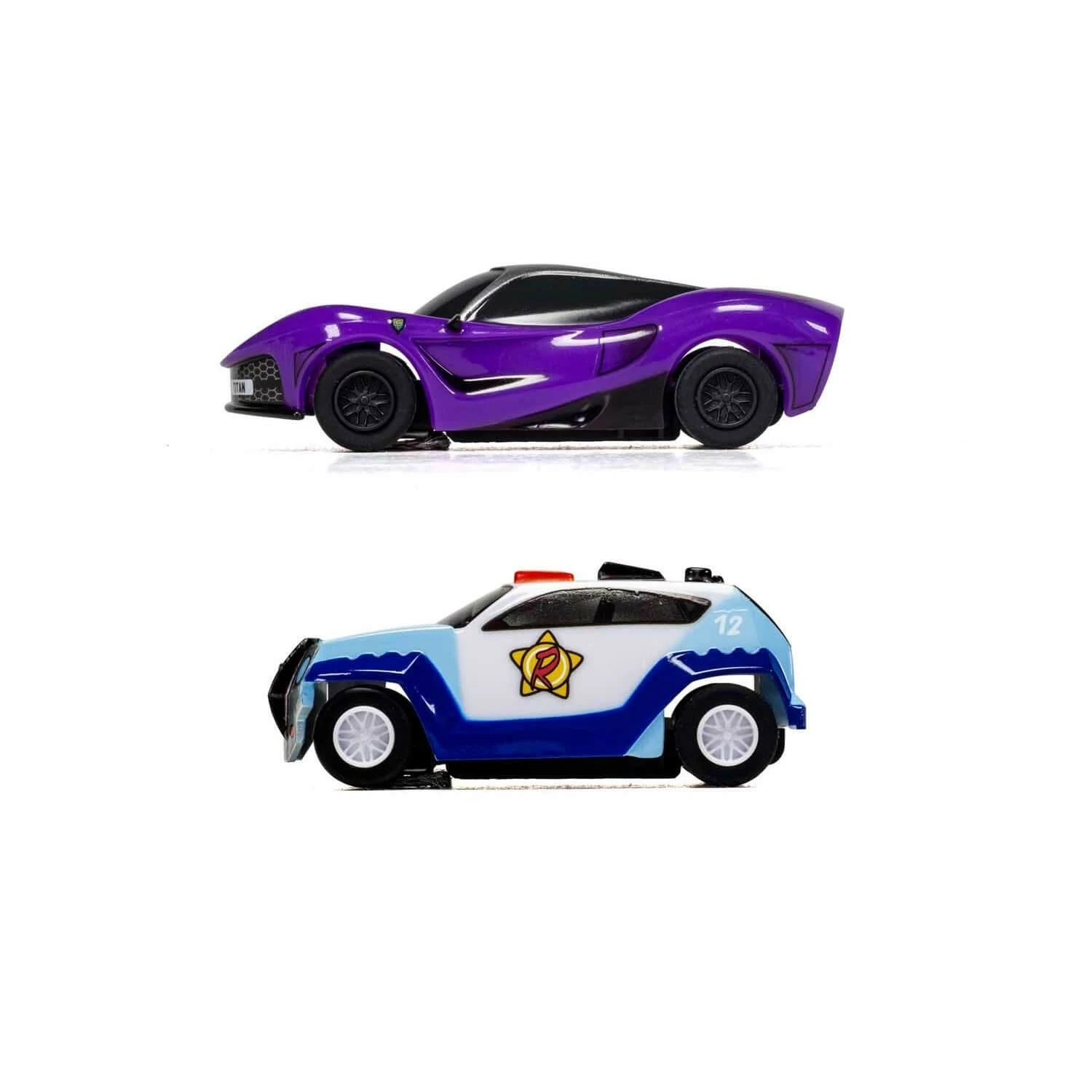 La voiture de patrouille de Ryan poursuit le Dark Titan Racer. Les enfants vont adorer les sensations de ce circuit avec sa piste de cascade Loop-the-Loop et ses 9 configurations différentes.