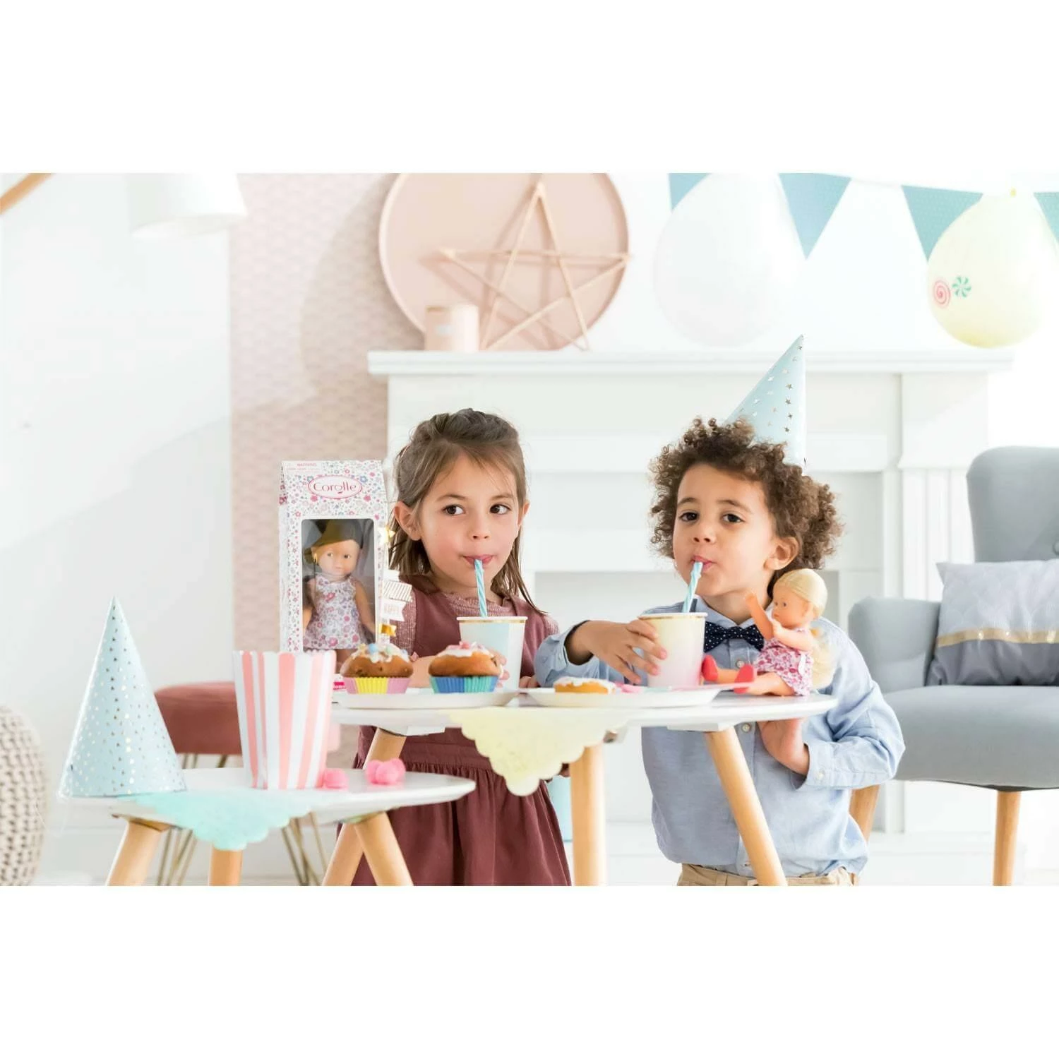 La mini poupĂ©e Coroline Romy Brune est vendue dans son emballage “boĂźte cadeau” fleuri, prĂȘte Ă offrir !