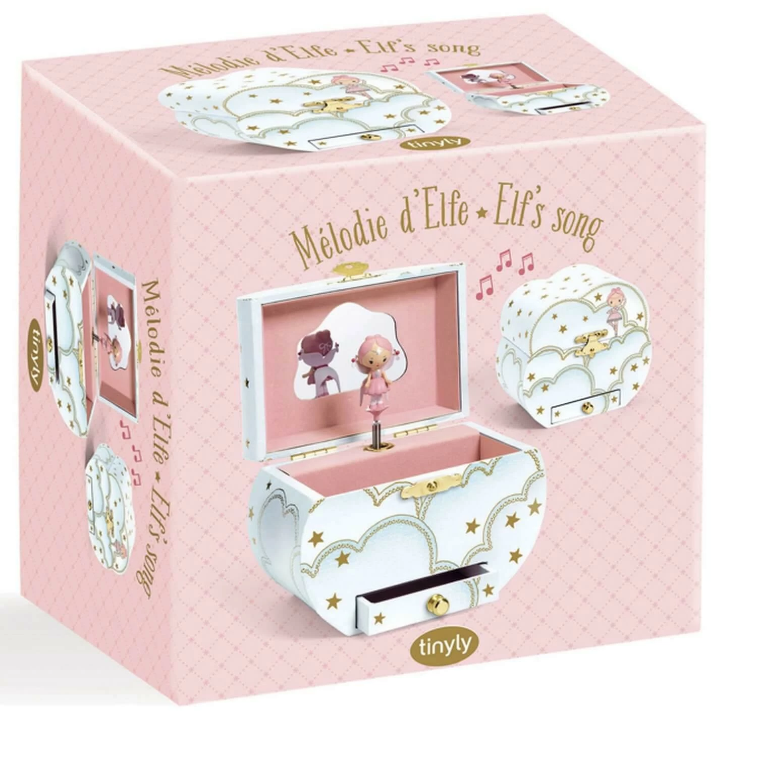 Découvrez la boîte à musique et à bijoux intitulée “Mélodie d’Elfe” de la marque Djeco, qui plaira beaucoup aux petits fans de figurines Tinyly.