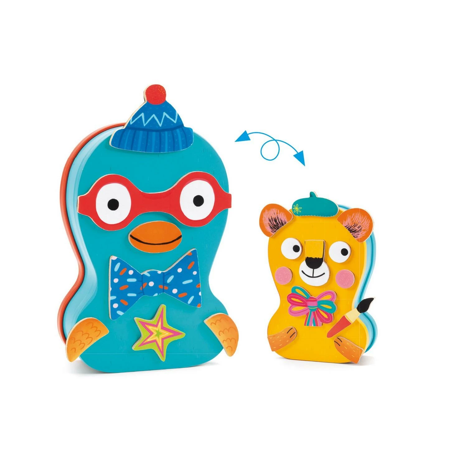 Découvrez une nouvelle maniÚre de jouer ! Avec les 40 piÚces magnétiques en bois, vous allez pouvoir transformer votre boßte métallique en de rigolos petits animaux.