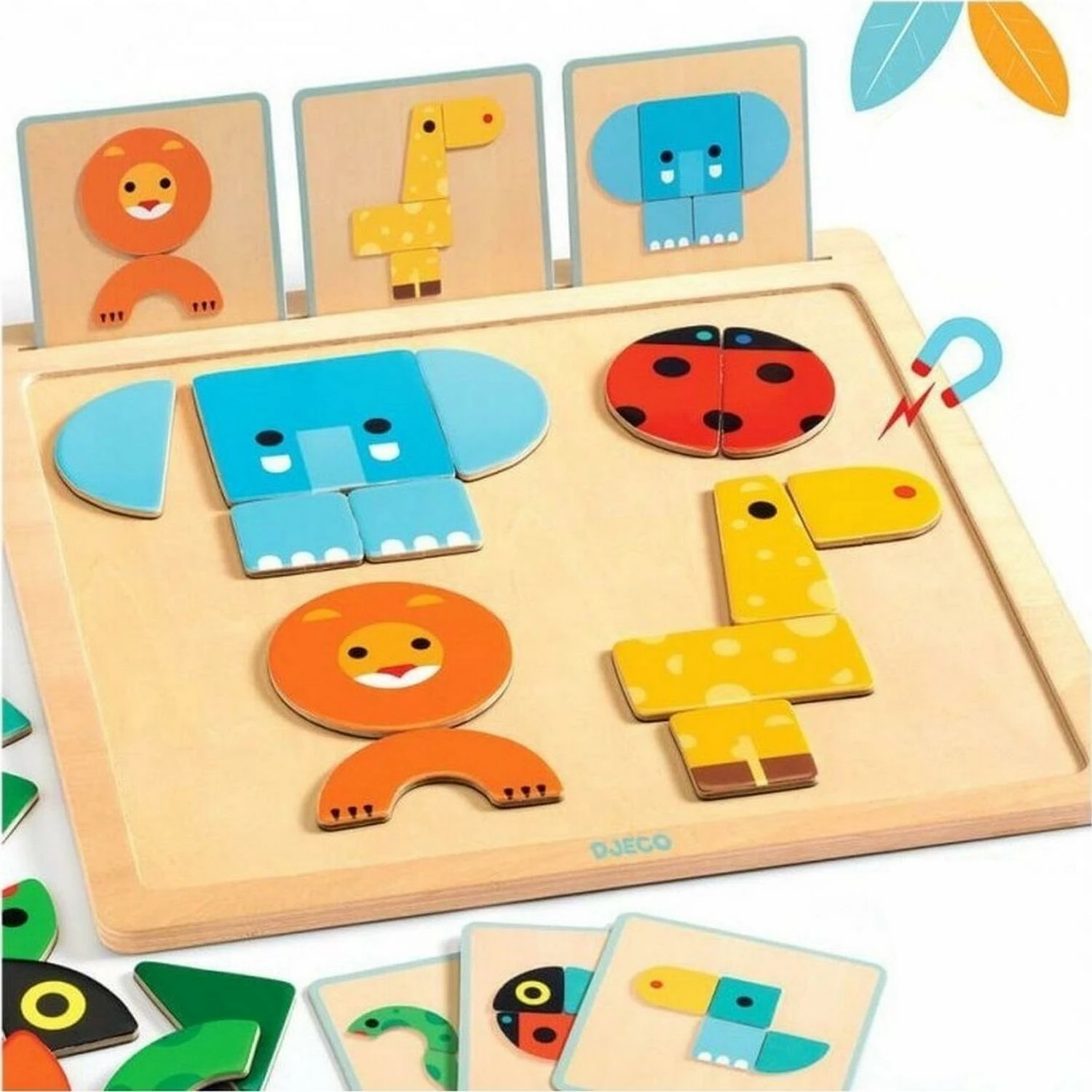 Grâce Ă son plateau et Ă ses pièces magnĂ©tiques, tu vas pouvoir t’amuser Ă recomposer les animaux. ÉlĂ©phant, coccinelle, girafe, lion… et pleins d’autres t’attendent !