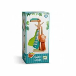 Un set de mĂ©nage fantaisiste sur le thĂšme de la jungle facile Ă ranger. Balayette-serpent, pelle vĂ©gĂ©tale, plumeau Ă dĂ©poussiĂ©rer-singe⊠au travail les Mister Clean ! Un portant en forme dâoiseau pour pouvoir ranger les accessoires. L’enfant apprend Ă nettoyer tout en s’amusant. Un jeu dâimitation pour que les enfants sâamusent comme les grands !