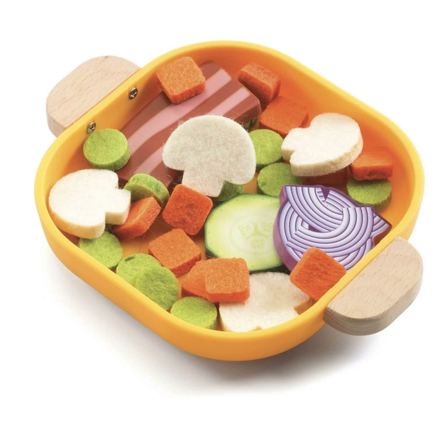 En compagnie de Cook et Scratch, votre enfant va s’amuser à cuisiner de délicieux petits plats. Il se découvrira une âme de chef cuistot en faisant revenir petits oignons et champignons !
