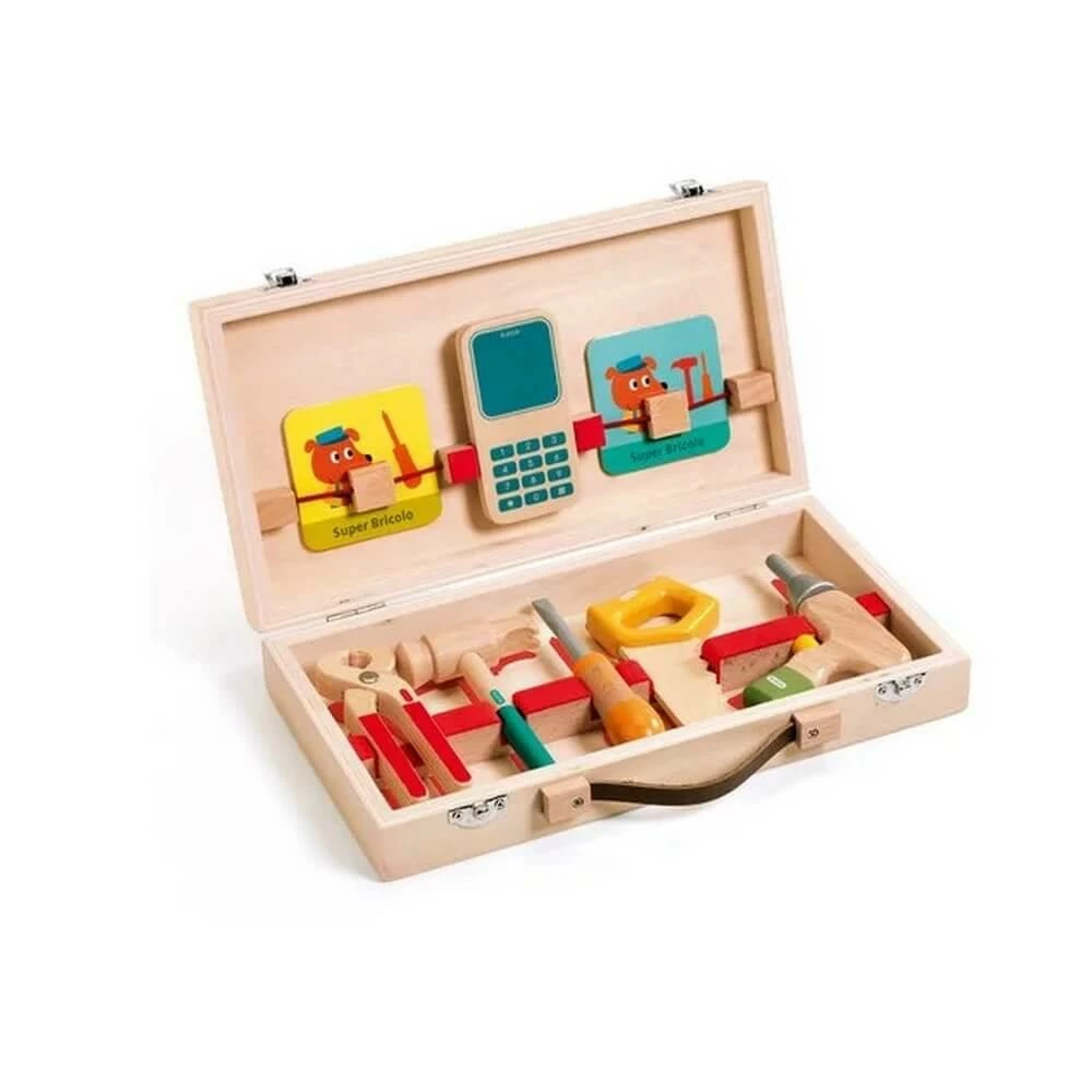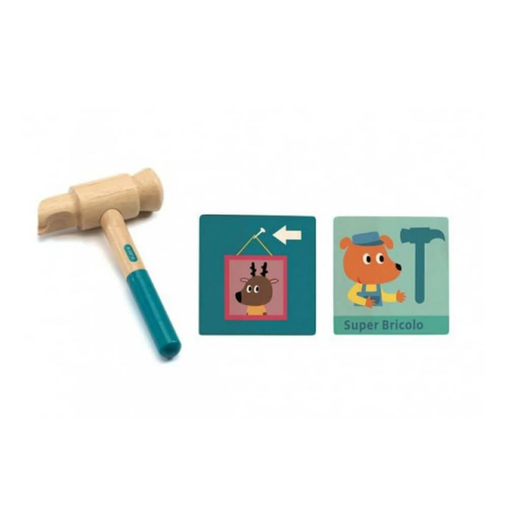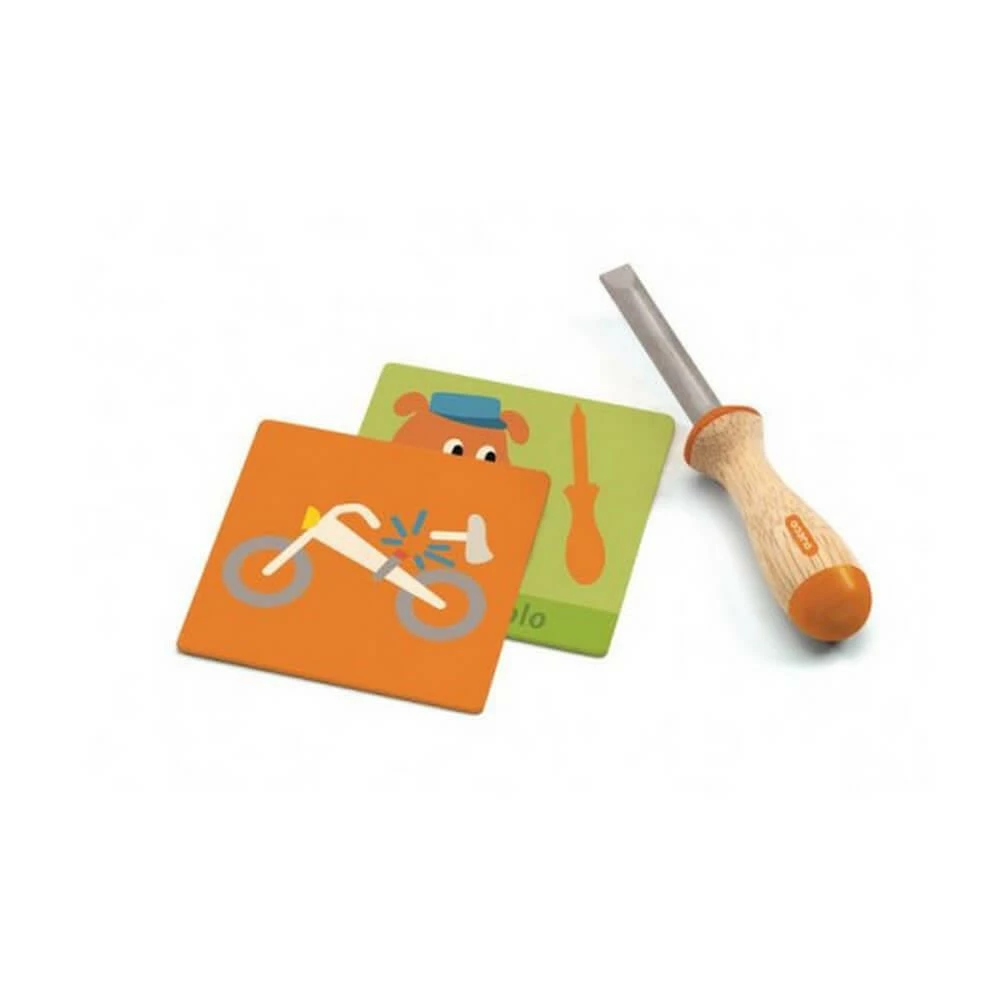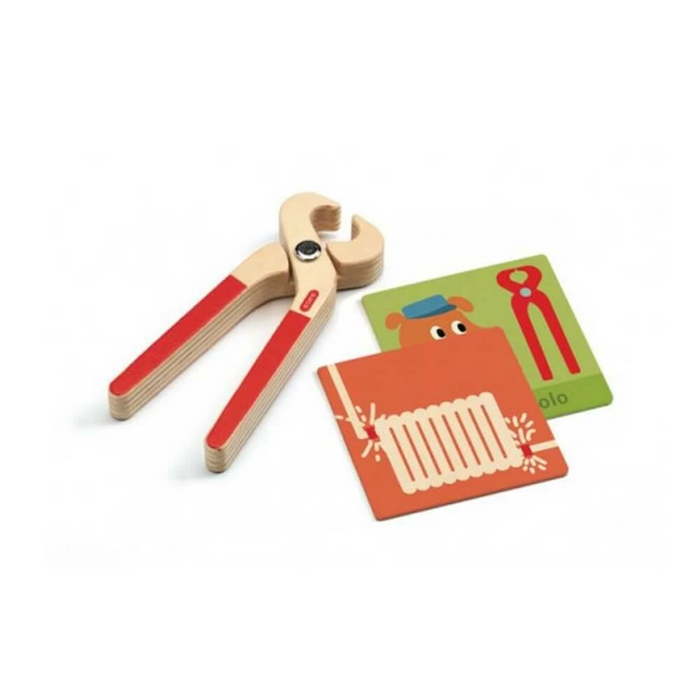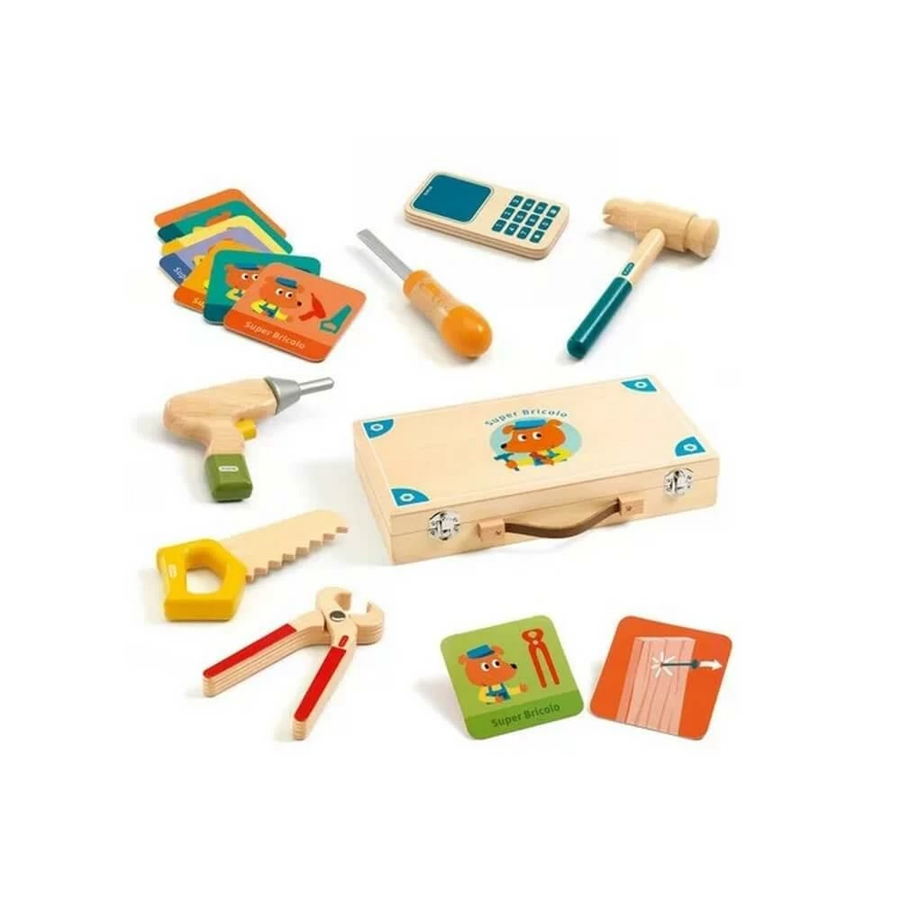 Cette boĂźte contient tous les outils en bois idĂ©als pour dĂ©panner comme les grands. Des outils de qualitĂ© accompagnĂ©s de cartes qui associent une situation et l bon outil que doit utiliser votre jeune bricoleur pour effectuer le rĂ©paration. Une activitĂ© manuelle, qui va dĂ©velopper l’imagination et la motricitĂ© de votre futur super bricolo !Â