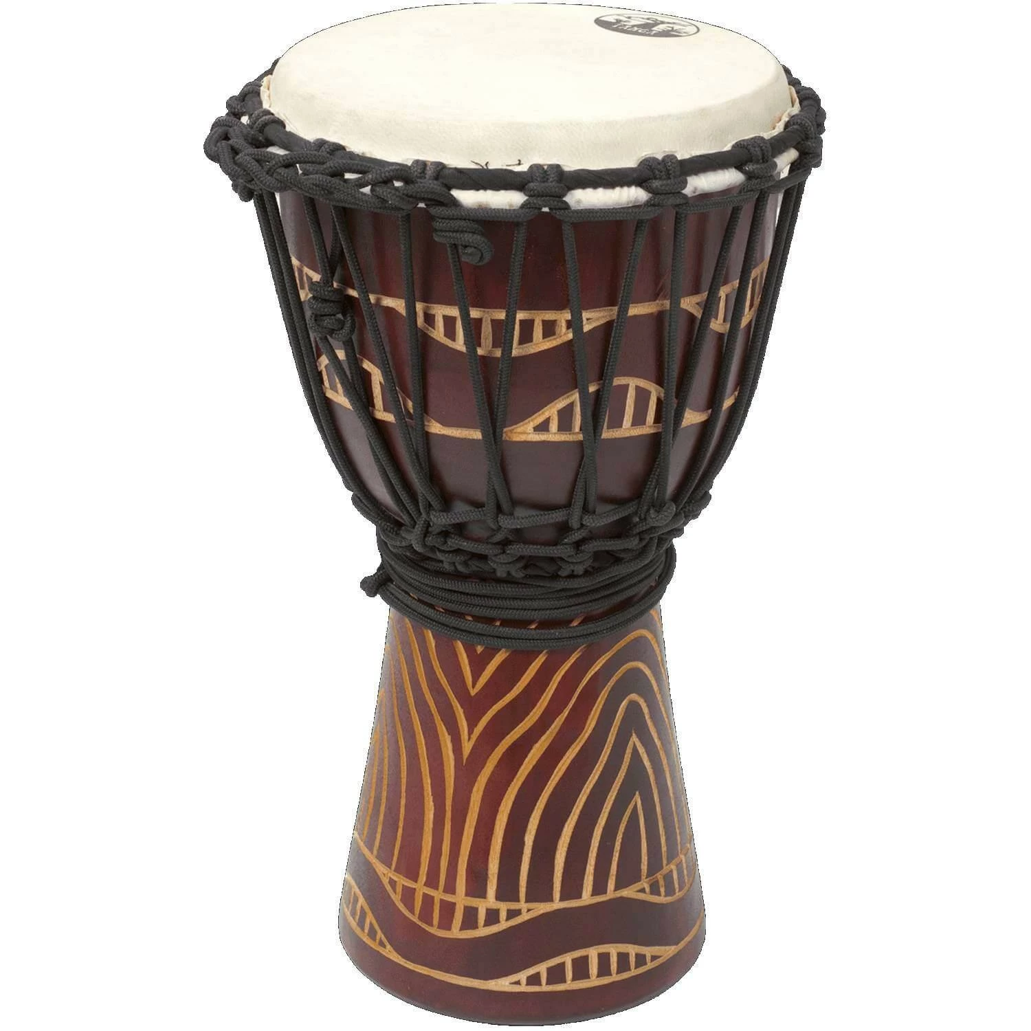 Esthétique, ce djembé Slammer est fabriqué et sculpté à la main. Les matières principales utilisées sont le bois ou la fibre