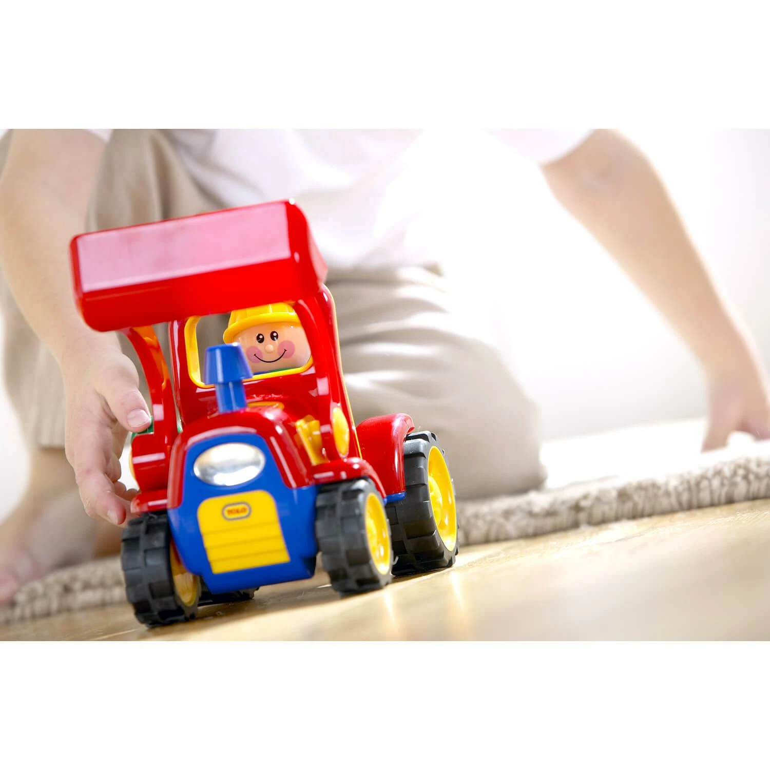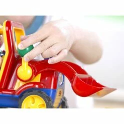 Montrez Ă votre bĂ©bĂ© que le jouet bouge et encouragez-le Ă le pousser sur le sol et Ă ramper aprĂšs lui. Allumez le vĂ©hicule et montrez Ă votre enfant la pelleteuse en action – montrez comment appuyer sur la tĂȘte pour la faire avancer. Votre bĂ©bĂ© est peut-ĂȘtre trop jeune pour le faire lui-mĂȘme, mais il adorera voir le camion prendre vie et se dĂ©placer sur le sol. A partir de 18 mois, montrez Ă votre enfant comment allumer le camion et le faire fonctionner et encouragez-le Ă inventer ses premiĂšres histoires.