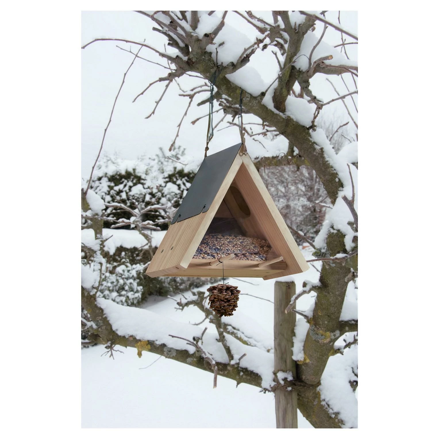 Les amoureux de la nature, petits et grands, apprĂ©cieront cette mangeoire pour nourrir les oiseaux. Le toit en tĂŽle se soulĂšve, ce qui permet de la remplir facilement. La façade est couverte par une vitre en verre acrylique, ce qui laisse voir le niveau de graines Ă tout moment. La mangeoire est conçue de telle sorte que les graines restent toujours sĂšches, Ă lâabri des intempĂ©ries et des fientes dâoiseau.