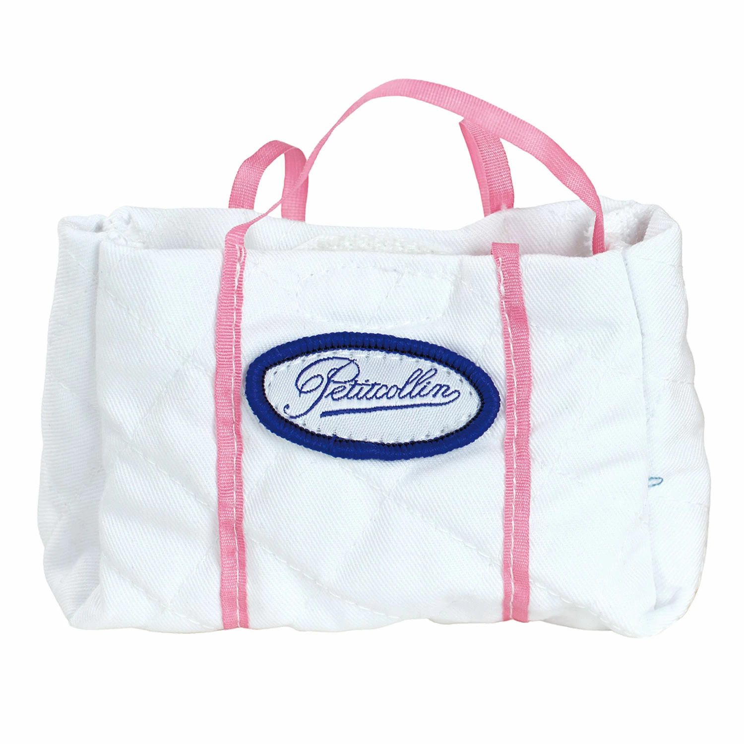Et enfin le sac cabas blanc Peticollin avec les anses roses pales.