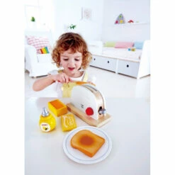 Les enfants à partir de 3 ans vont adorer préparer le petit déjeuner de leur parents avec cet ensemble grille-pain sauteur ! Placez les tartines dans le grille-pain, appuyez sur le bouton marche et faites sauter le pain grillé !