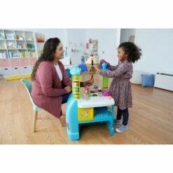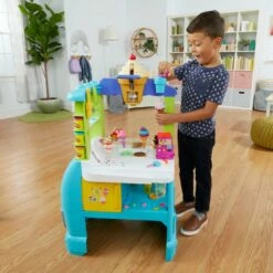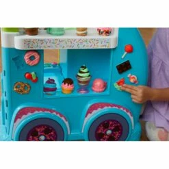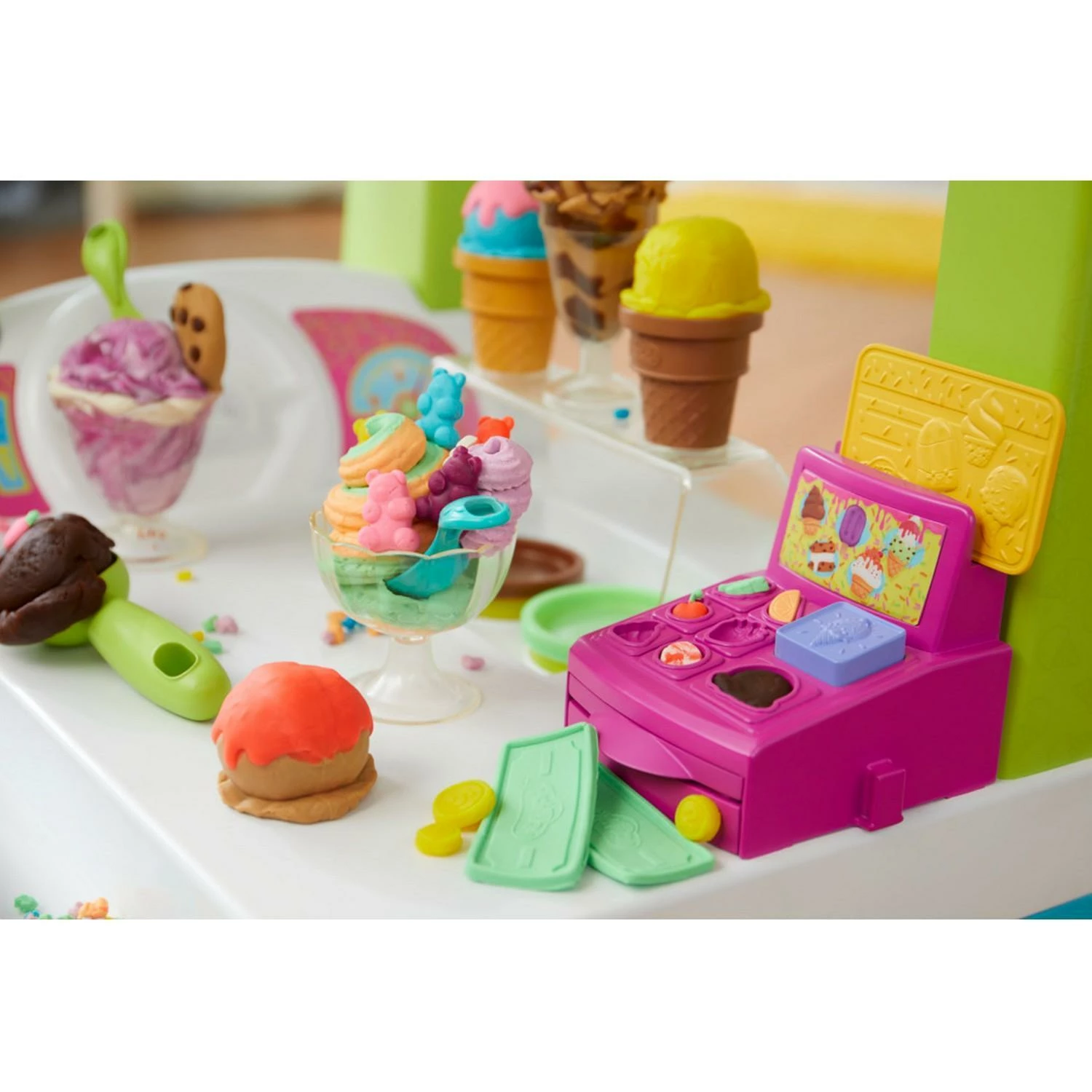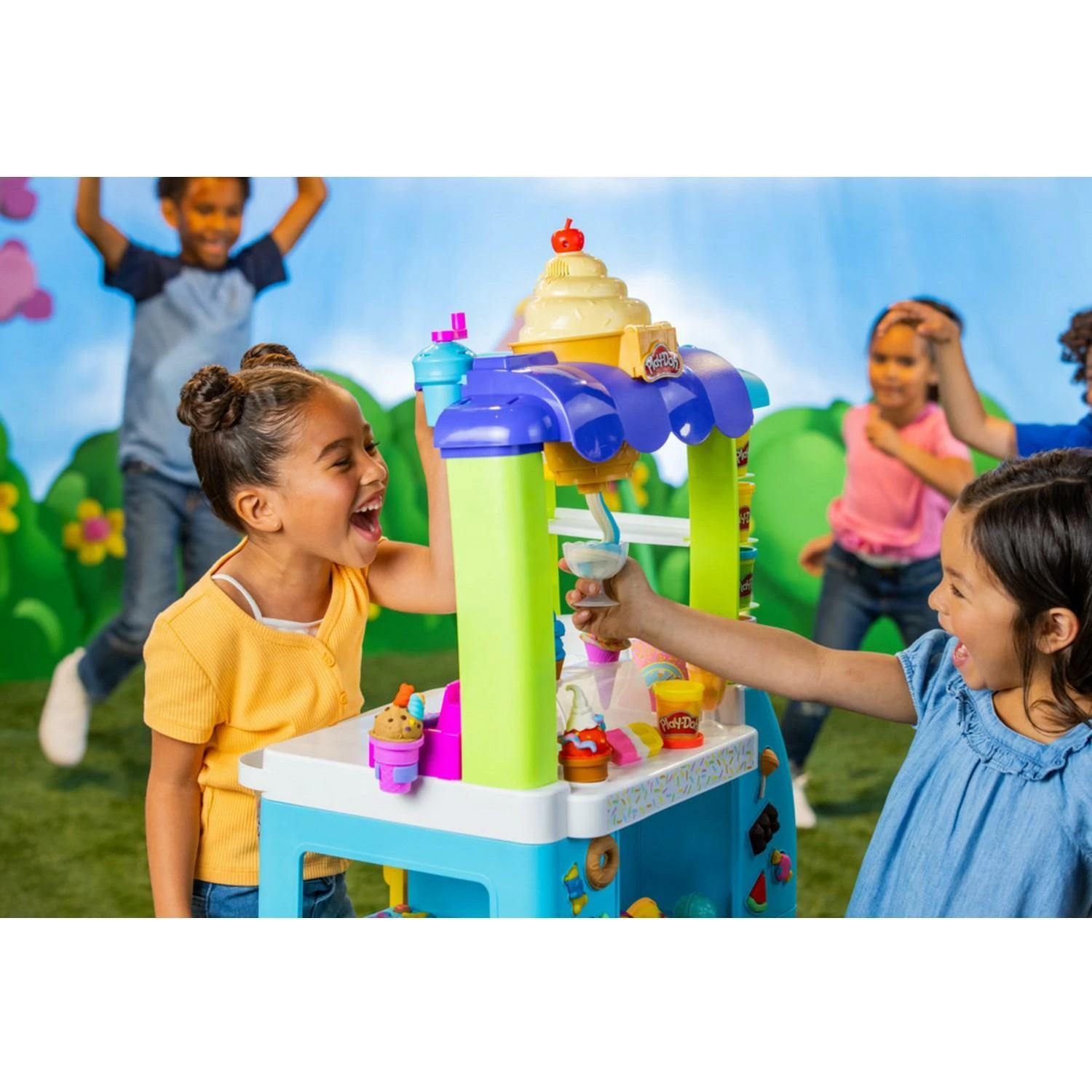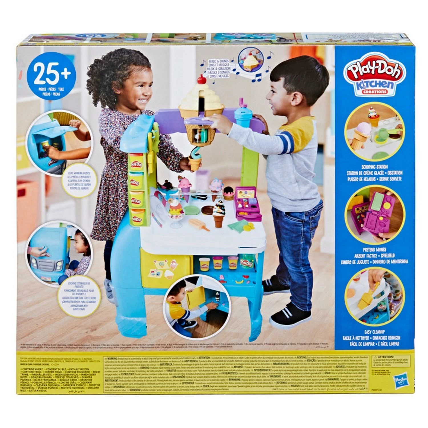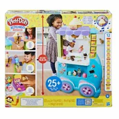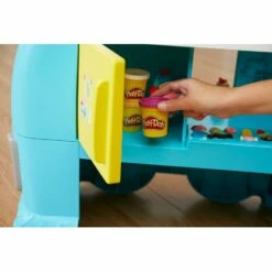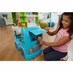 On peut transformer l’aire de jeu de votre enfant en véritable fête Play-Doh avec ce Camion de glace géant de 95 cm de hauteur ! Ce grand coffret de cuisine donne aux enfants plus d’espace pour exprimer leur imagination débordante. Les 27 outils et la machine à glace à l’italienne permettent de créer toutes sortes de desserts glacés, de personnaliser les créations avec la manivelle à vermicelle, les outils et les moules à bonbons Play-Doh, et de faire payer les clients à la caisse. Les enfants auront l’impression d’être de vrais marchands de glace grâce à la musique amusante et aux bruits de la caisse enregistreuse.