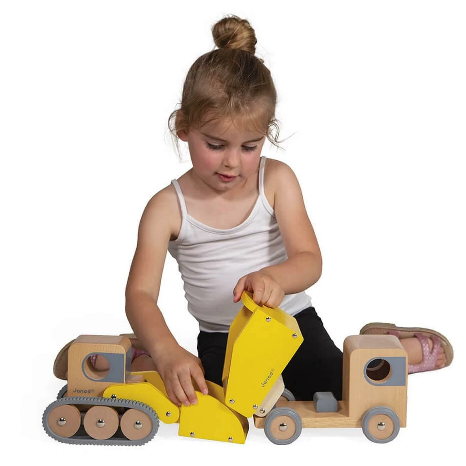 Camion benne et Pelleteuse BOLID, de la marque Janod