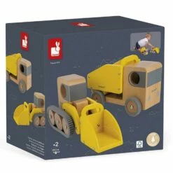 Pour devenir le meilleur des contremaĂźtres sur les chantiers, il vous faut : une pelleteuse et un camion benne ! ComposĂ© de 2 vĂ©hicules incontournables des grands travaux, ce joli set en bois massif ravira tous les fans de construction dĂšs 2 ans. Le camion benne est composĂ© d’une benne basculante afin de dĂ©poser le contenu sur le chantier. Il est aussi Ă©quipĂ© de roues silencieuses en caoutchouc. La pelleteuse, quant Ă elle, est Ă©quipĂ©e de chenilles en silicone amovibles pour faciliter l’entretien du camion. Le godet de la pelle manipulable est adaptĂ© Ă la benne du camion.