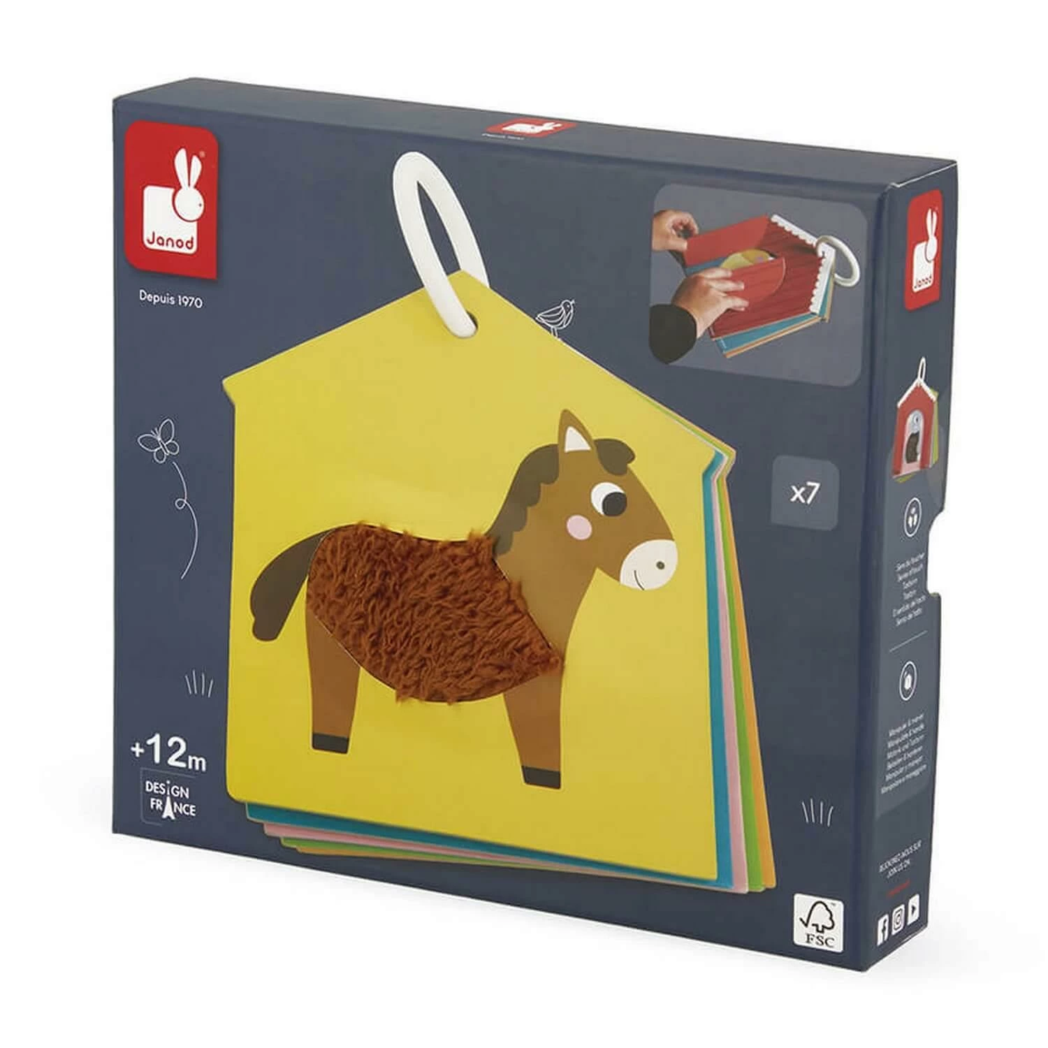 Découvre les cartes tactiles sur les animaux de la ferme de la marque Janod.