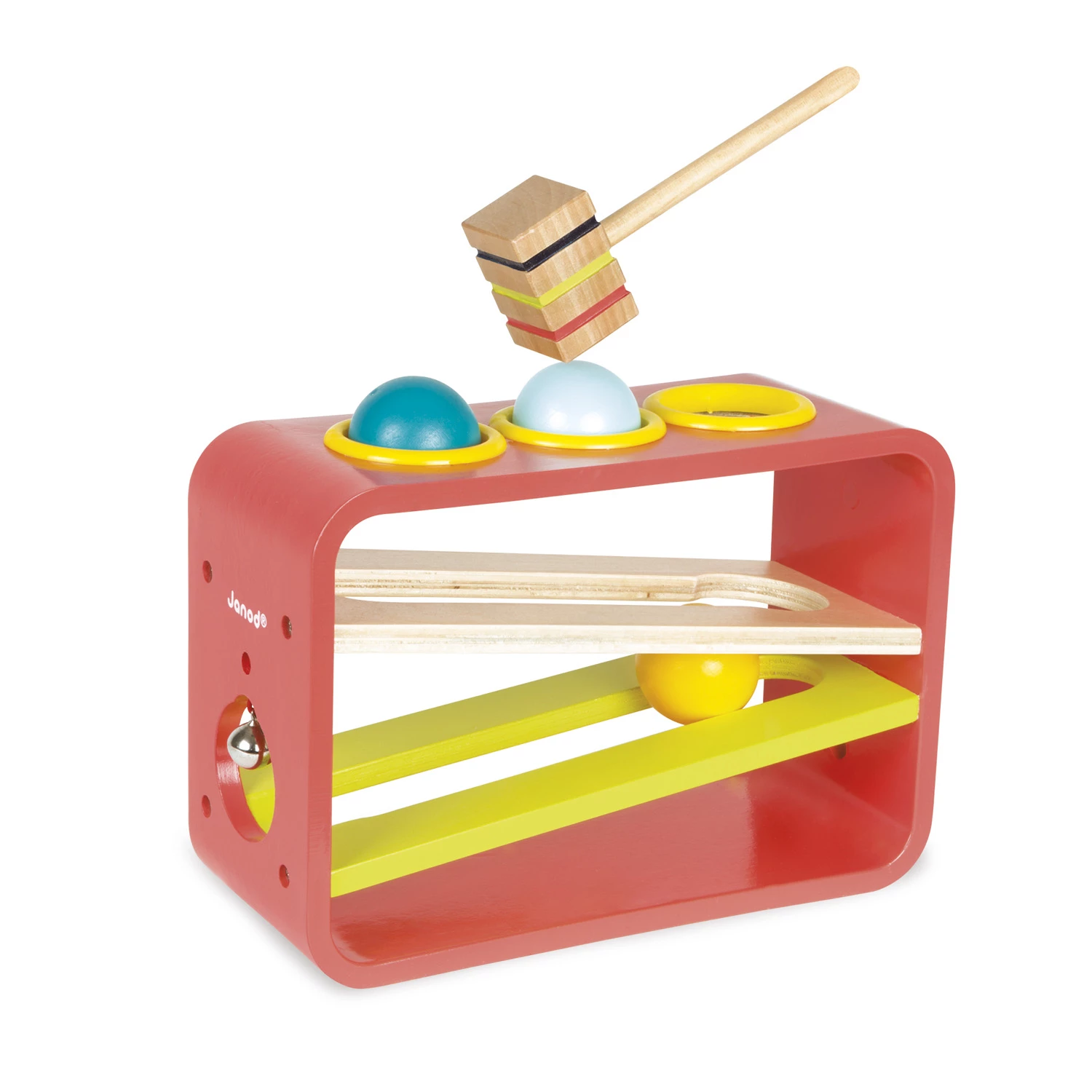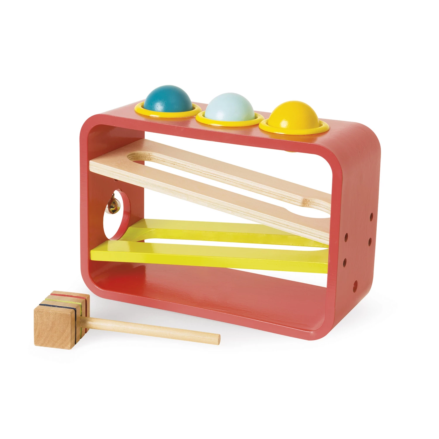 Trois boules de couleur et un marteau en bois, pour s’amuser pendant des heures voilĂ un jouet de choix !