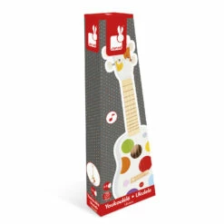 La célèbre marque Janod, spécialiste des jouets en bois, propose à un enfant ce joli ukulélé en bois décoré de confetti. L’instrument est blanc avec de jolis ronds colorés qui sauront attirés le regard de l’enfant. Avec un tel jouet entre les mains, comment résister ?