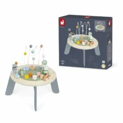 Une table multi-activités en bois aux couleurs douces parfaitement adaptée aux petits dÚs 12 mois !