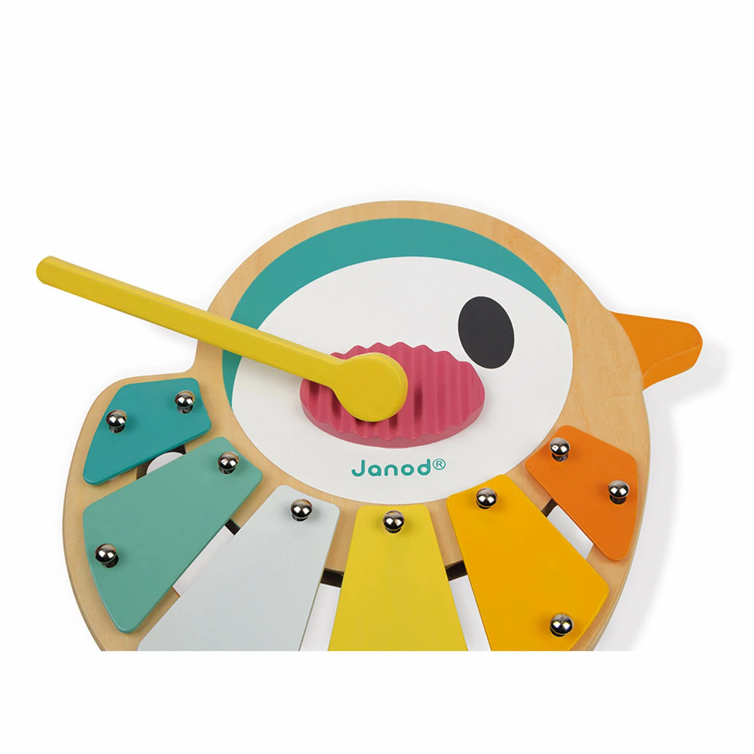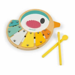 Facile Ă utiliser, le xylophone est souvent le premier instrument des tout petits. Ce beau modĂšle en bois prend la forme d’un adorable petit oiseau aux couleurs trĂšs douces et trĂšs actuelles. TrĂšs rigolo, ce sont ses pattes qui deviennent des baguettes puis se rangent Ă l’intĂ©rieur quand l’enfant a fini de jouer !