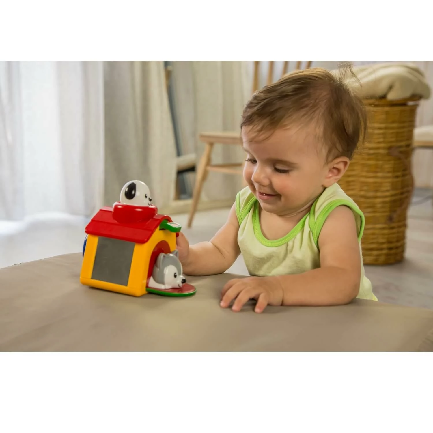 Laissez votre enfant dĂ©couvrir cette adorable niche avec deux chiots et encouragez-le Ă explorer toutes les parties qui bougent et mĂȘme Ă partir de 18 mois Ă jouer des scĂšnes et inventer ses premiĂšres histoires. Encourage la comprĂ©hension de cause Ă effet.