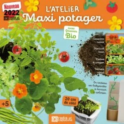 Le coffret Maxi Potager vous accompagne dans vos premiers pas au jardin, dans la dĂ©couverte de la culture des lĂ©gumes et des fleurs utiles. Savez-vous que la capucine protĂšge les autres lĂ©gumes des insectes ? Des semis à faire Ă tout moment de lâannĂ©e pour voir comment pousse le Haricot, pour faire rĂ©colter de la salade Ă couper et pour Ă©tonner toute la famille en rĂ©coltant des tomates Cerise.