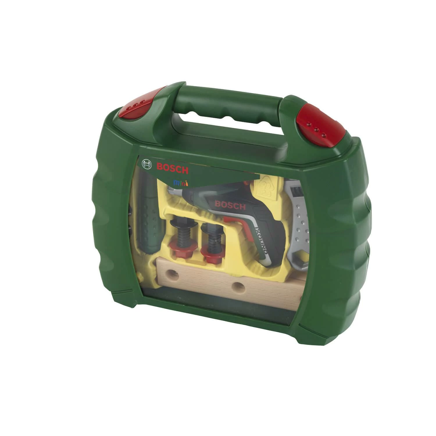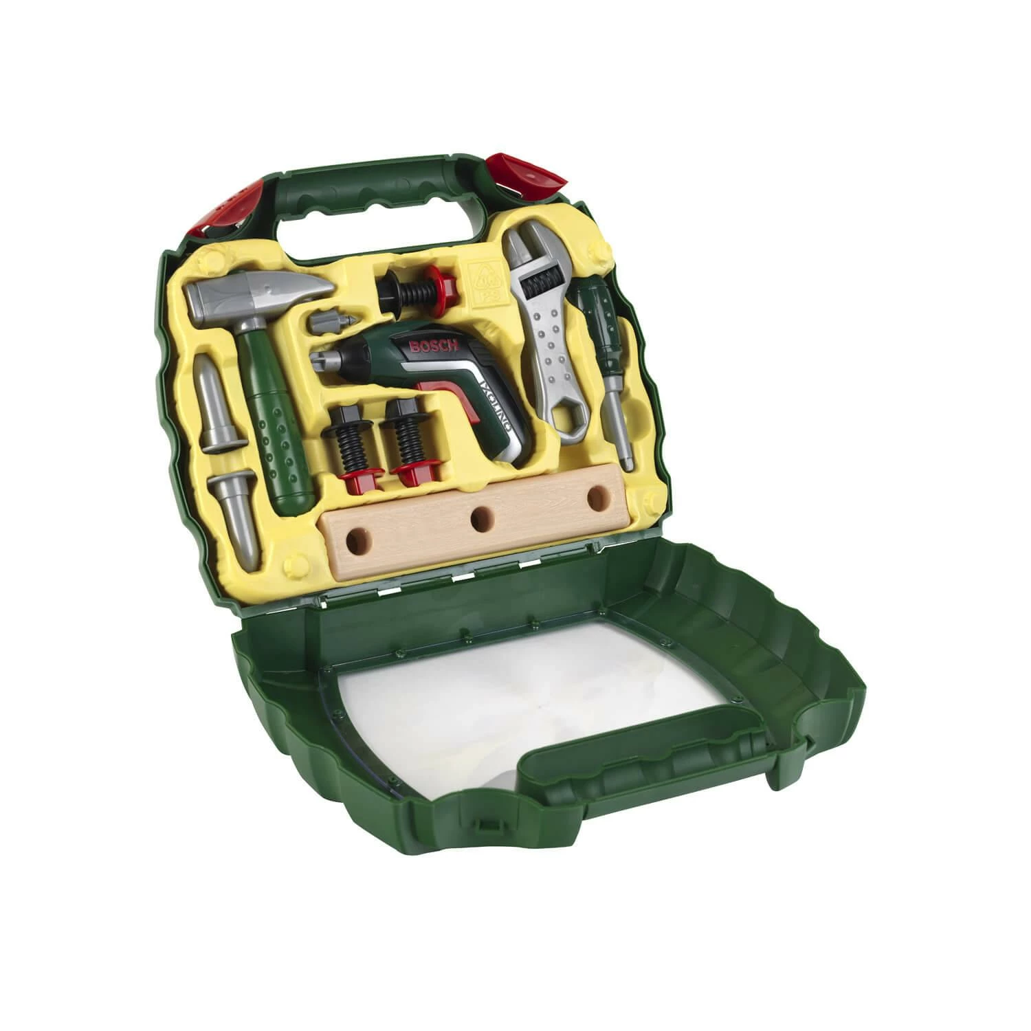 Cette mallette vitrine sous licence BOSCH comprend les accessoires indispensables pour apprendre Ă bricoler comme les grands :