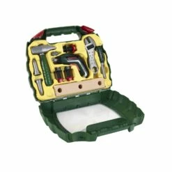 Cette reproduction fidĂšle d’une mallette de bricolage, de la marque Klein, contient tout ce qu’il faut pour jouer les apprentis bricoleurs.