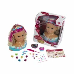 Cette tête à coiffer et à maquiller Princess Coralie est irrésistible avec son visage aux traits réalistes, ses beaux yeux bleus, ses magnifiques cheveux blonds et roses lavables et coiffables.