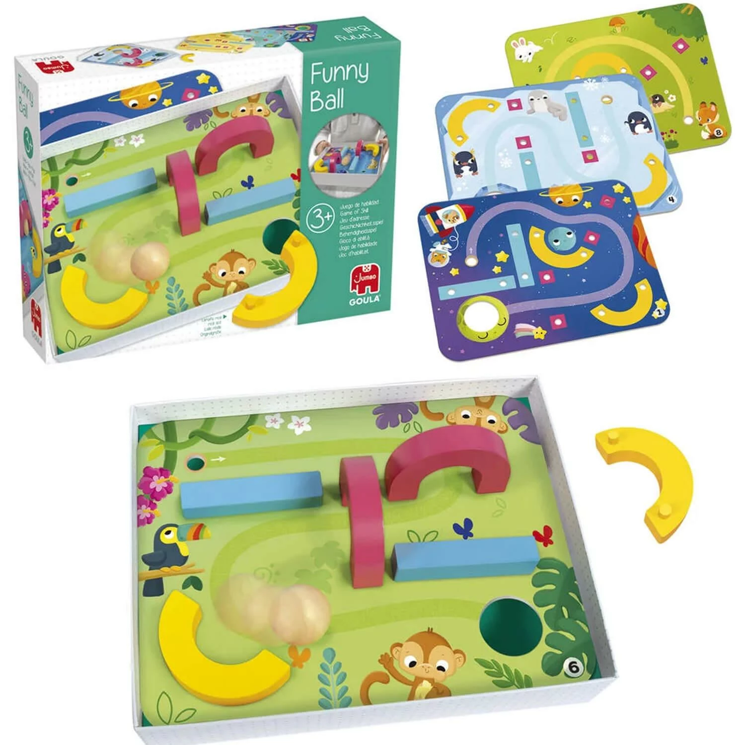 DĂ©couvrez Funny Ball, un premier Labyrinthe de la marque Goula dans lequel les enfants construisent un circuit progressif afin dây faire dĂ©rouler la balle !