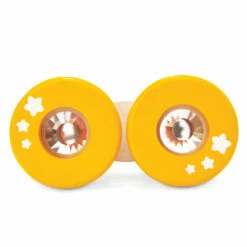 Une paire de jumelles en bois ornĂ©e d’une coccinelle pour les petits aventuriers !