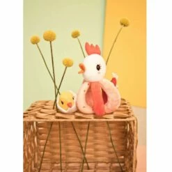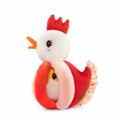 Ce hochet original et doux est facile à saisir par les petites mains de bébé grâce aux poignées qui forme le corps. Ce hochet est formé d’une poulette, Paulette, une maman très affectueuse qui couve son petit. Elle cache en effet un petit poussin qui vient de sortir de sa coquille. Avec ses jolies couleurs et sa prise en main facile et sa texture toute douce, ce hochet sera parfait pour amuser les tout-petits et les consoler lors de gros chagrins.