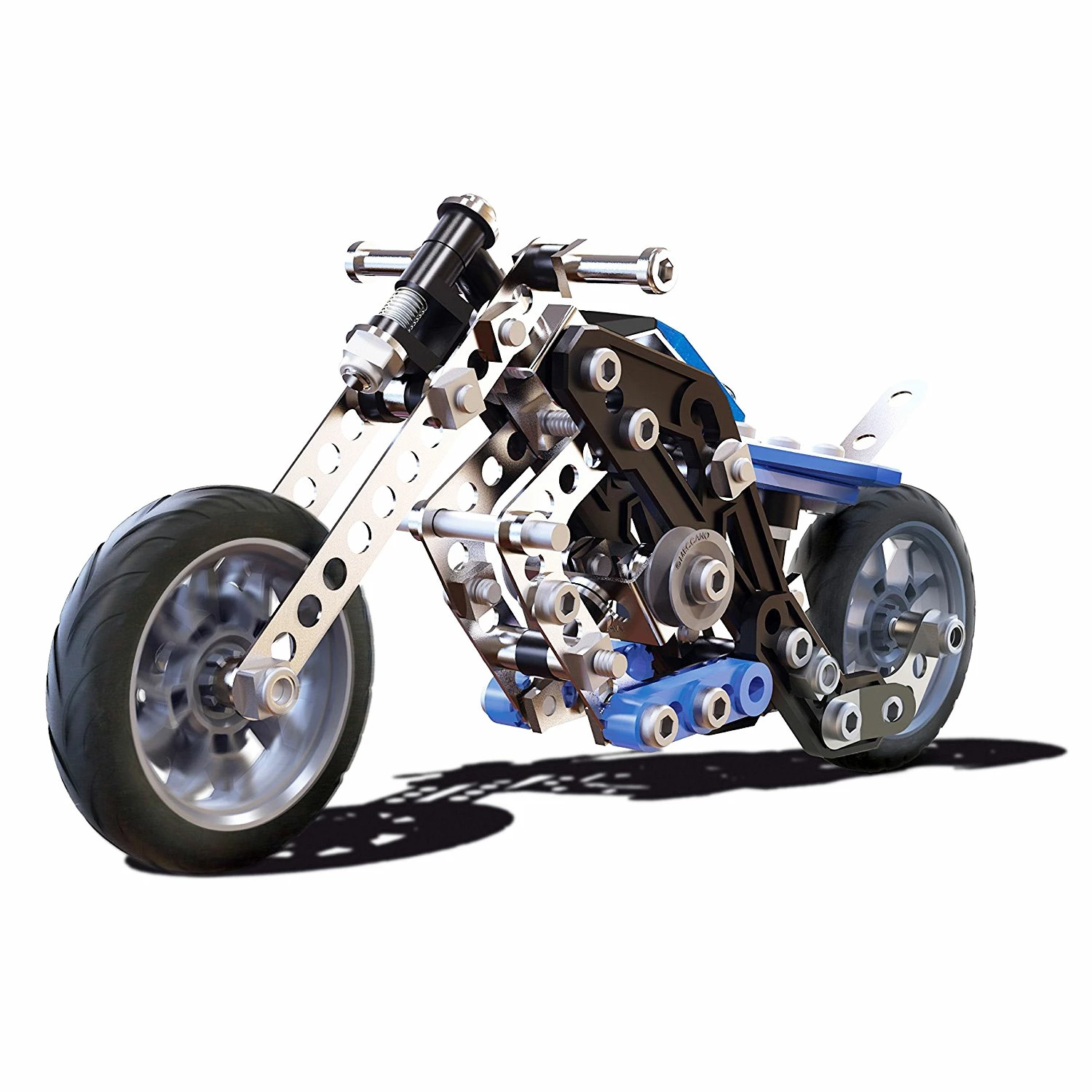 GrĂące Ă la notice, l’enfant assemble par lui-mĂȘme les piĂšces mĂ©talliques composĂ©es de plaques, Ă©crous, vis, roues… ĂquipĂ© des outils de serrage ou desserrage, l’enfant est parĂ© pour la construction d’une superbe moto. Vous avez la possibilitĂ© de la modifier Ă vos souhaits pour qu’elle devienne moto de course, façon Harley, moto cross…