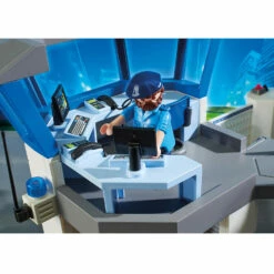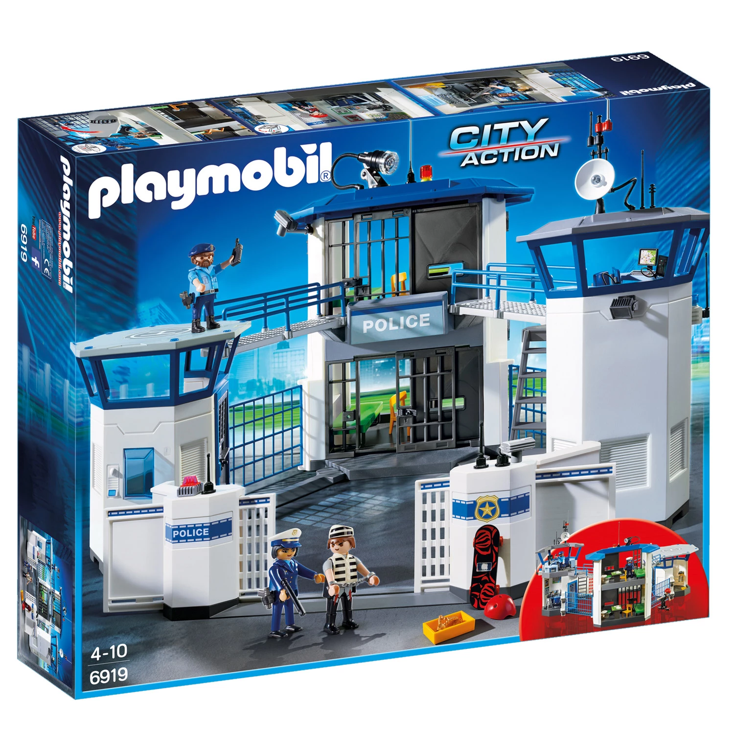 Note : La Voiture de policiers avec gyrophare et sirĂšne (disponible sur notre site et sous la rĂ©fĂ©rence Playmobil-6920) peut se garer dans la cour du commissariat. Une hĂ©lisurface pour l’hĂ©licoptĂšre (disponible sur notre site et sous la rĂ©fĂ©rence Playmobil-6921) se situe sur le toit.