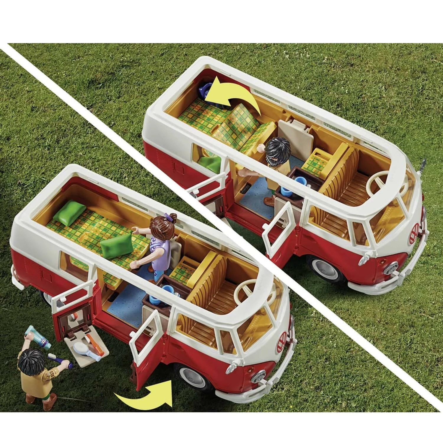Le mythique camping-car Volkswagen T1 Combi prend la route pour les vacances avec Ă son bord vos figurines Playmobil ! IdĂ©al pour partir Ă l’aventure, ce van est entiĂšrement Ă©quipĂ© avec un coin salon, un lit pliable, une mini-cuisine… Alors bonne route !
