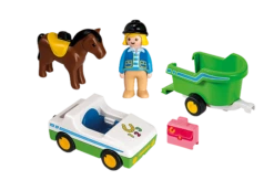 La cavalière aimerait s’entraîner avec son cheval pour la prochaine compétition. Depuis plusieurs semaines, ils s’entraînent tous les deux très durs pour s’y préparer. Le grand jour est arrivé. On charge précautionneusement le cheval dans la remorque, et on ferme le hayon. Impatiente, la cavalière monte dans la voiture et démarre. Ce sera une journée très stressante. Le PlaySet se compose d’une voiture avec remorque pour chevaux, d’une figurine PLAYMOBIL® 1.2.3, d’un cheval et d’une mallette. Comprendre le monde en s’amusant avec PLAYMOBIL® 1.2.3. Les PlaySets conviennent parfaitement aux enfants à partir de 18 mois. Avec leurs formes rondes et leurs couleurs vives, et dans la mesure où ils ne contiennent aucune pièce susceptible d’être avalée, les PlaySets sont sûrs, de qualité, et raviront aussi bien les enfants que les parents.
