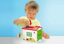 Par un jeu de formes, le camion peut ĂȘtre chargĂ© avec le sac, le tonneau et la caisse. Le camion se range Ă l’intĂ©rieur du garage. PLAYMOBILÂź 1.2.3 – les tout petits voient grand ! Les PLAYMOBIL 1.2.3 sont colorĂ©s avec des formes arrondies, ils aident les enfant Ă se dĂ©velopper et Ă apprendre en jouant.