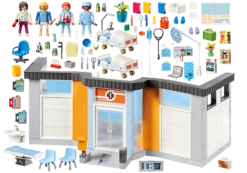 La clinique est assez équipée pour accepter tous types de problèmes. La salle d’opération est équipée d’un écran de contrôle lumineux (nécessite une pile AAA 1,5 V non fournie), d’un projecteur rotatif et de nombreux autres dispositifs de traitement. Avec quatre personnages et de nombreux accessoires. Dimensions : 60 x 31 x 20 cm (LxPxH).