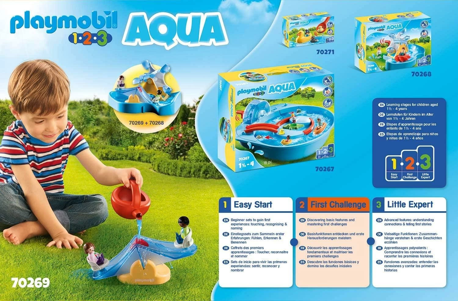 PLAYMOBIL 1.2.3 accompagne les enfants de façon ludique pendant les premiĂšres annĂ©es de leur vie. Le monde est si grand, colorĂ© et impressionnant aux yeux des enfants. Tout ce qui est expĂ©rimentĂ© et appris aujourd’hui constitue un socle pour la vie future. PLAYMOBIL 1.2.3 encourage ce dĂ©veloppement de maniĂšre progressive et ludique parce que chaque enfant grandit Ă sa façon et Ă son propre rythme. Little expert : GrĂące Ă ce jouet, l’enfant expĂ©rimente des apprentissages polyvalents comme comprendre les connexions et raconter les premiĂšres histoires. Les premiĂšres expĂ©riences aquatiques favorisent de maniĂšre ludique la motricitĂ© et la comprĂ©hension du monde qui entoure l’enfant. Les petits amateurs de jeux d’eau vont dĂ©couvrir les diffĂ©rentes fonctions du jouet grĂące aux Ă©lĂ©ments rouges.