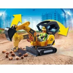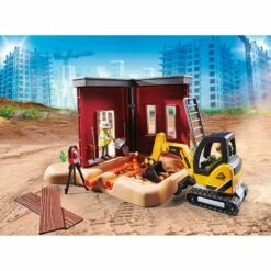 Contenu : 2 personnages d’ouvriers, une mini-pelleteuse, 1 tuyau, 1 grillage et d’autres accessoires de construction.