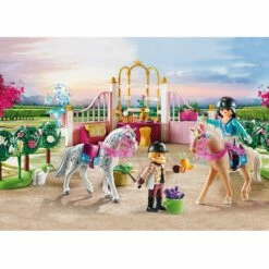 Contient 2 personnages, 2 chevaux, des arbres, 1 cloture, des paniers et d’autres accessoires (seau, cravaches, nourriture,âŠ)