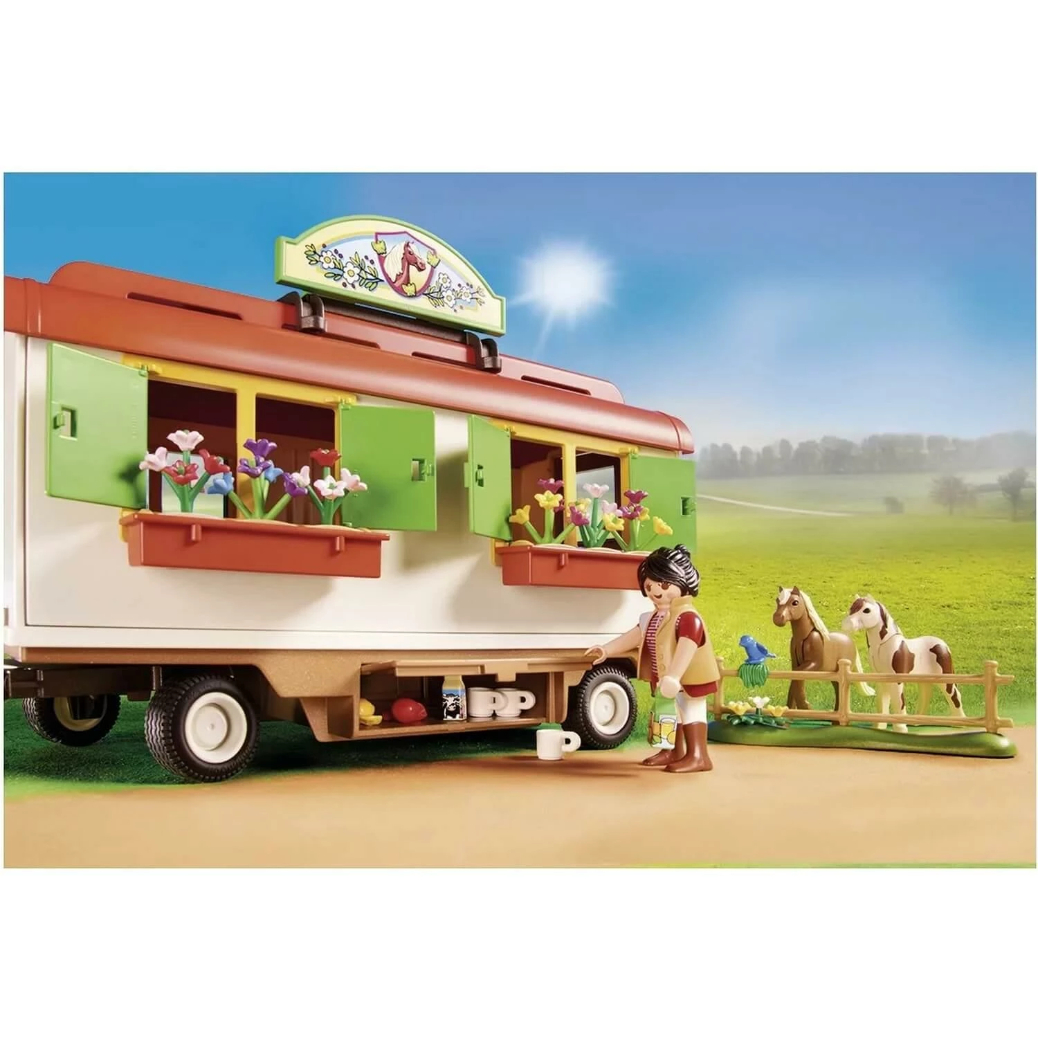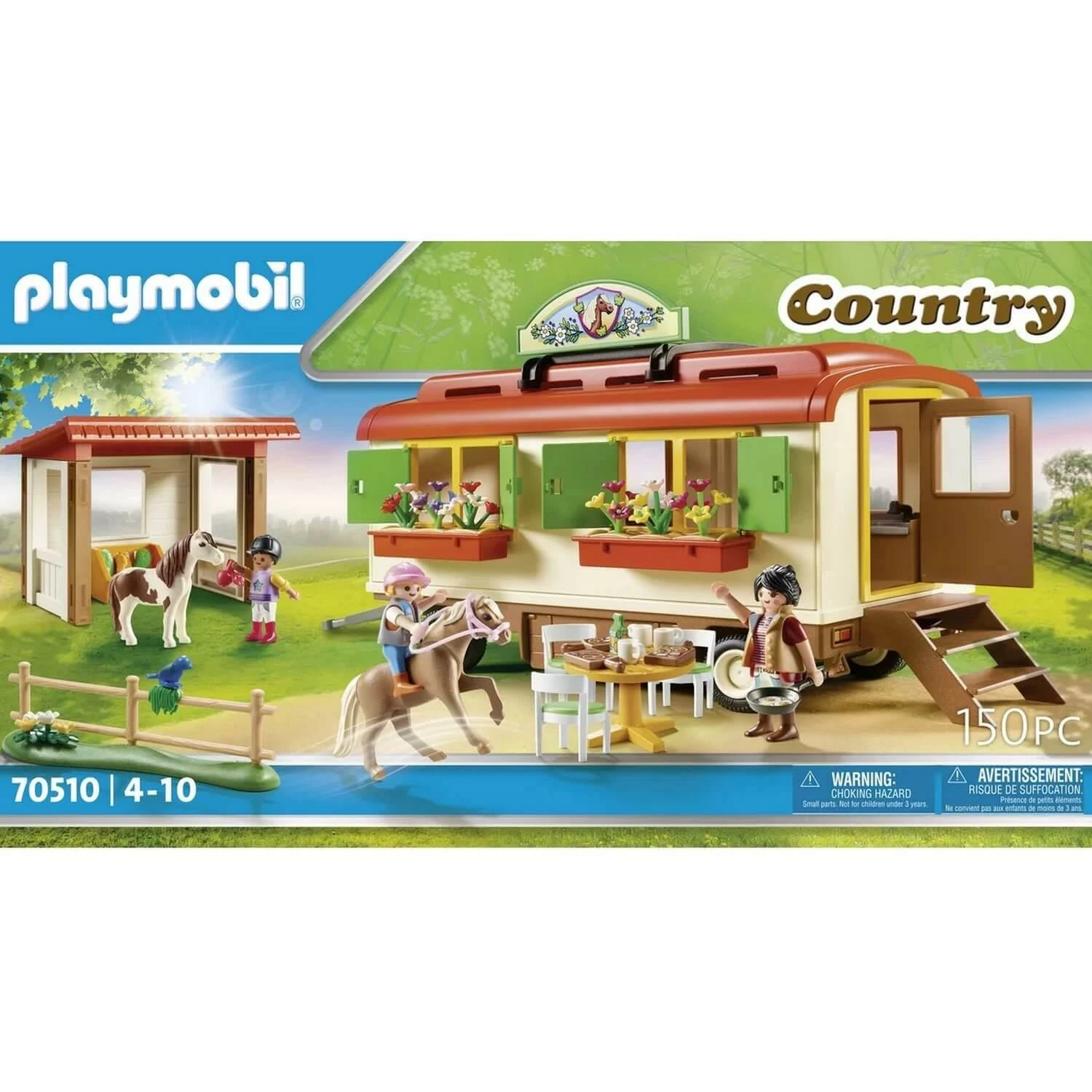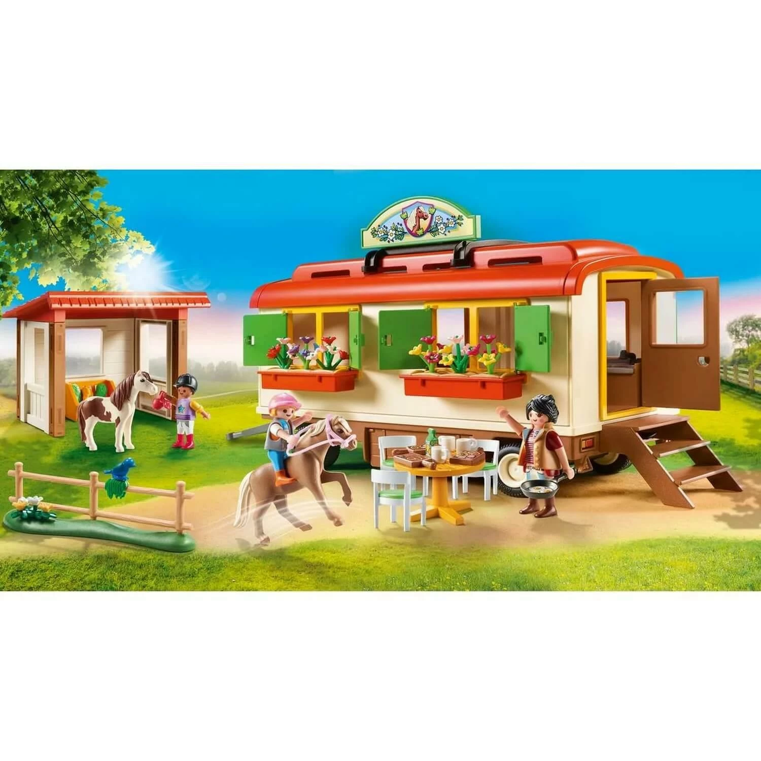 Retrouvez sur notre site le Playmobil 70510 : Box de poneys et roulotte de la marque Playmobil !Â