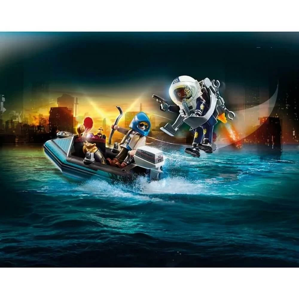 Retrouvez sur notre site le Playmobil 70782 City Action : Policier avec réacteur dorsal et canoë de la marque Playmobil !