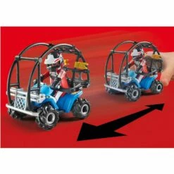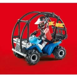 Un coffret pour dĂ©couvrir un univers Playmobil ! Ă l’aide du moteur Ă retro friction, le quad saute par-dessus la dangereuse rampe d’incendie. La cage de protection garantit qu’il finisse sur ses quatre roues aprĂšs chaque saut.