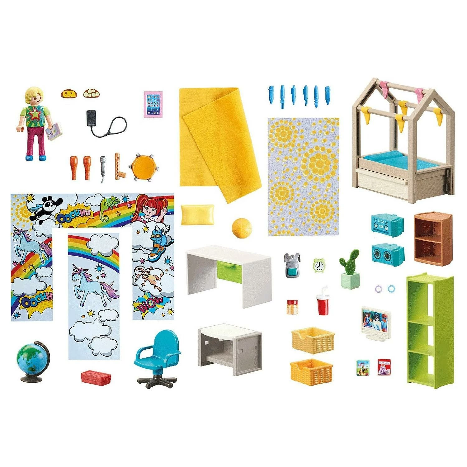 Trop belle cette chambre ! Le lit en forme de maison est super original. Il y a un bureau pour les devoirs et mĂȘme quelques instruments de musique pour se dĂ©tendre aprĂšs l’Ă©cole. GrĂące Ă cette chambre d’adolescent Playmobil, votre enfant va stimuler son imagination et construire de nombreux scĂ©narios pour ses figurines. Il peut crĂ©er des scĂšnes de la vie de tous les jours et inventer de nouvelles histoires dĂ©bordantes de rĂ©alisme.