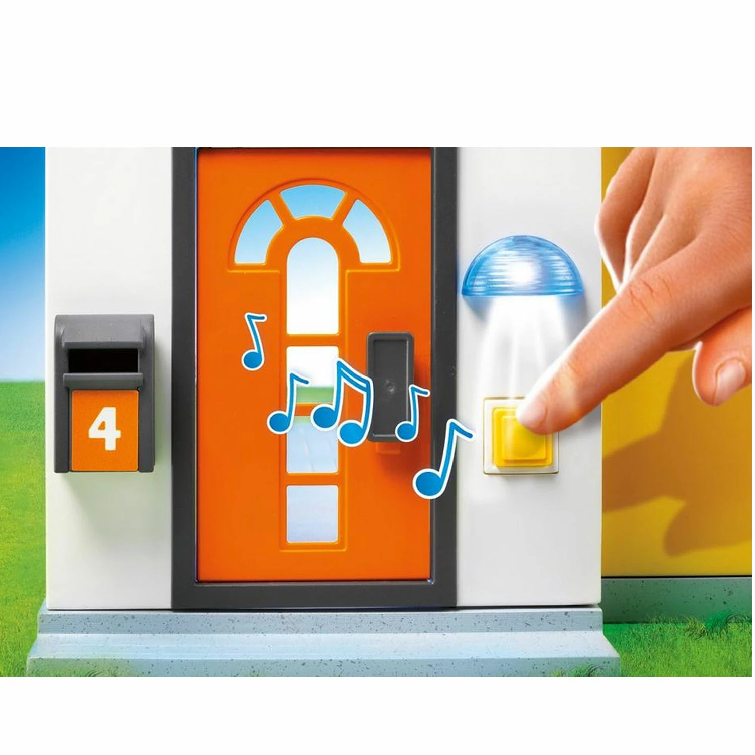 Avec sonnette et éclairage extérieur fonctionnant réellement (2 piles 1,5 V micro requises).