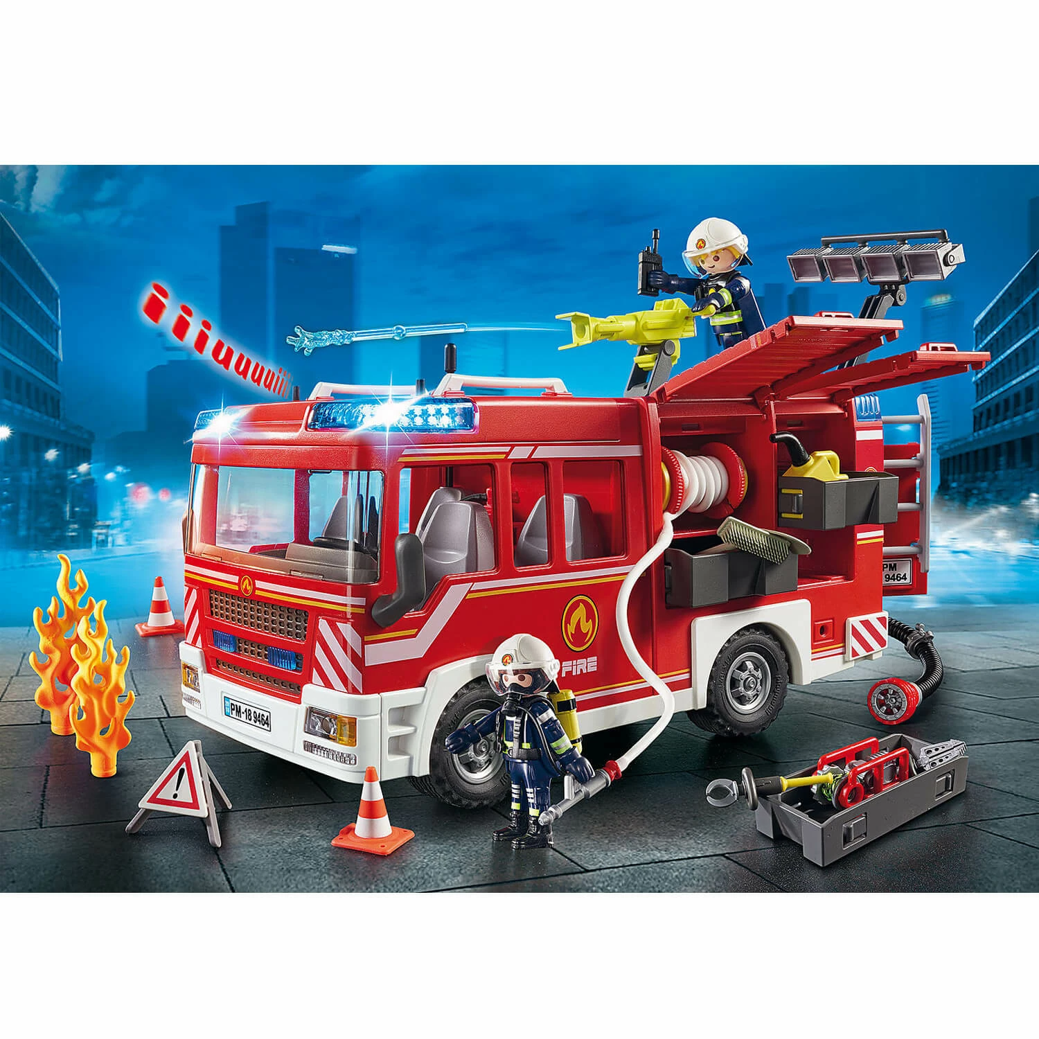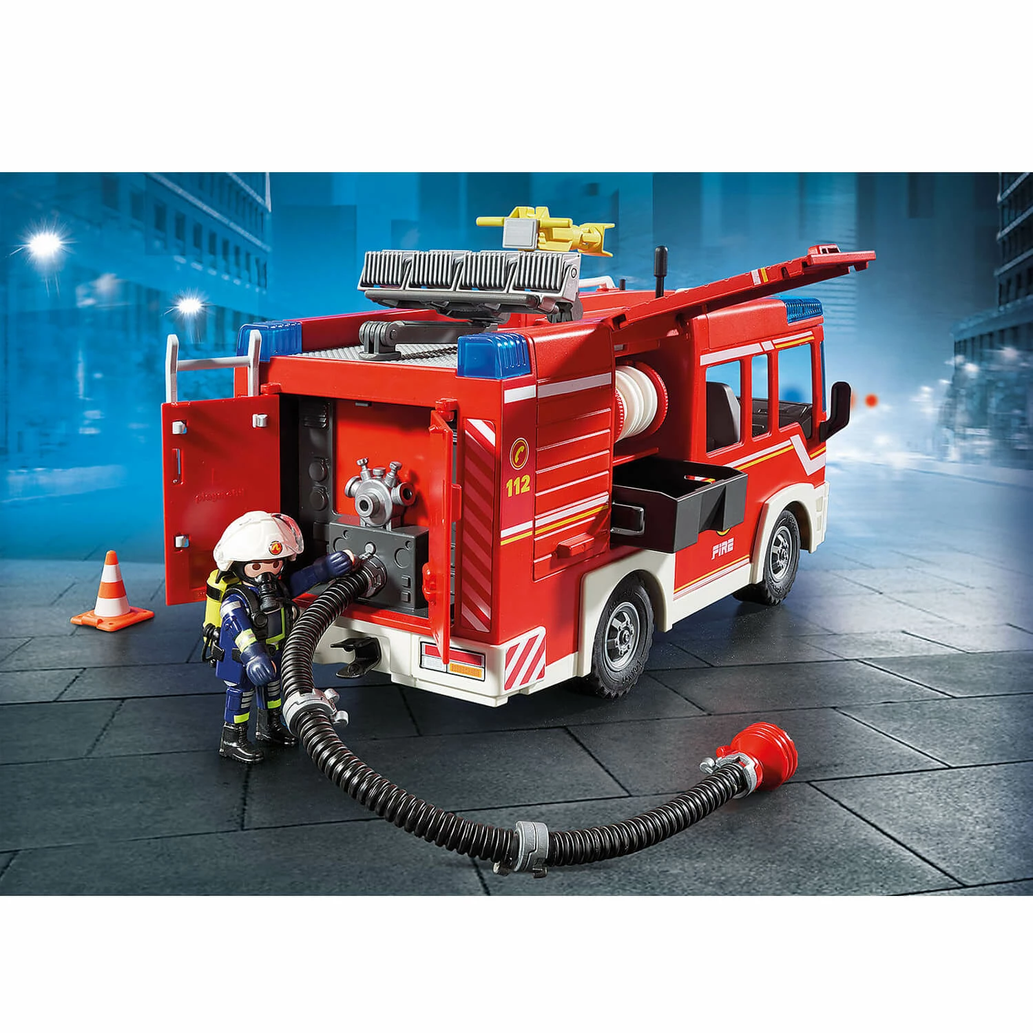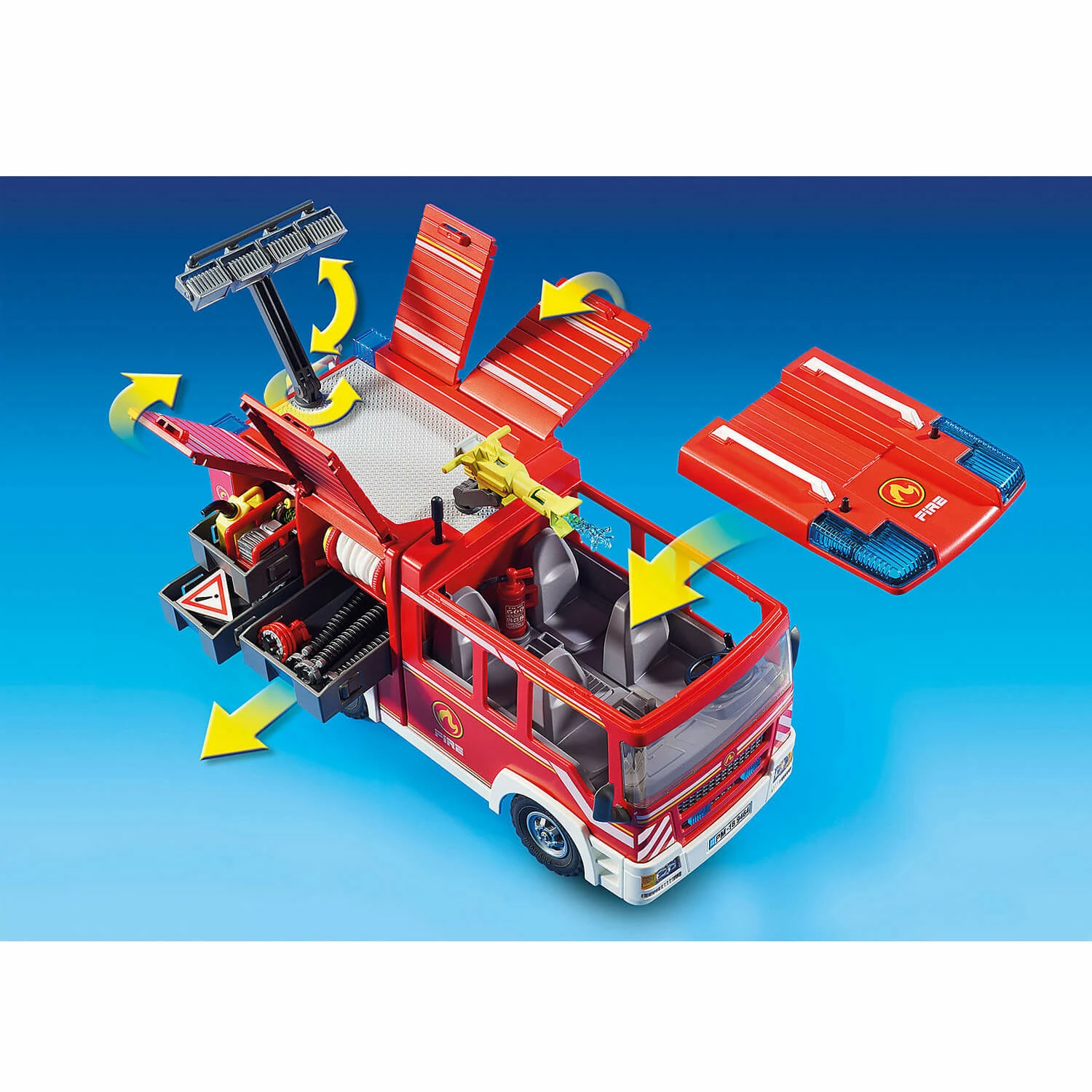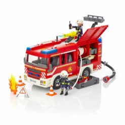 Faites place pour la grande autopompe ! Les collĂšgues sur place ont un besoin urgent de renforts. L’Ă©quipe dans l’autopompe Playmobil, avec son grand tuyau Ă eau et des Ă©quipements spĂ©ciaux supplĂ©mentaires est exactement ce qu’il faut.
