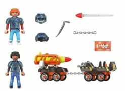 Les 2 personnages Playmobil Alya et Samu prennent place dans leur puissant vĂ©hicule de tir, ils sont fins prĂȘts pour rentrer dans la mine et attaquer ceux qui se trouveront sur leur chemin. A l’attaque !